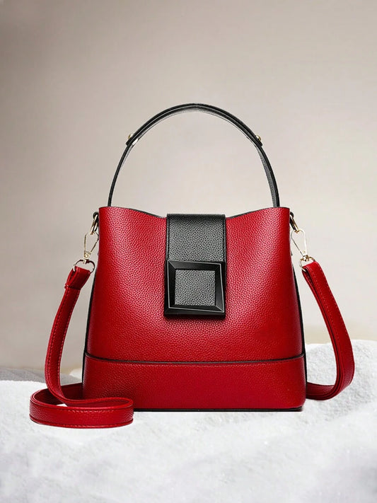 Stylish Retro Bucket Bag - PU Leather Casual Shoulder Messenger Handbag in Classic Solid Colors