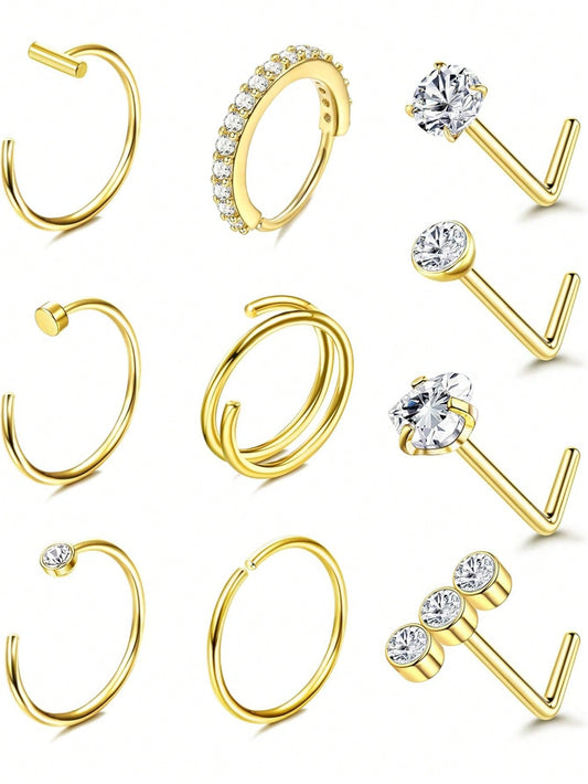 Milacolato Gold Filled 20G Nose Ring Studs โ Hypoallergenic Stainless Steel Piercing Jewelry Set for Men & Women (10PCS)