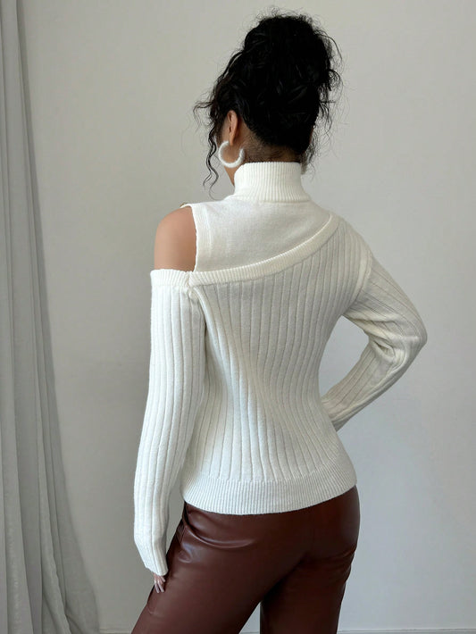 Chic Elenzga High Neck Cutout Shoulder Sweater for Women - Perfect Autumn & Winter Knit Pullover