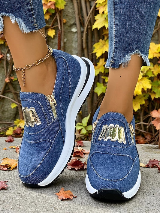 Trendy Women's Casual Sneakers for Daily Travel - Comfortable Flat Heel Design with Zipper in Dark Red, Black, or Blue