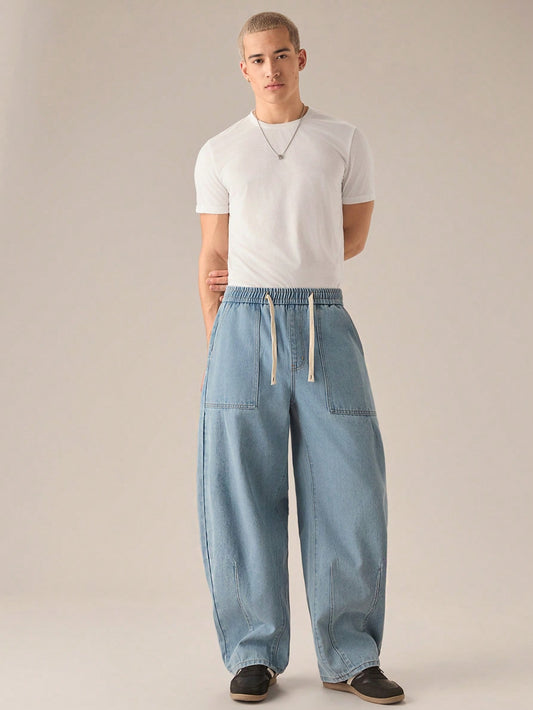 Men's Casual Loose Straight Leg Drawstring Pants - Comfortable Solid Color Design for Everyday Wear