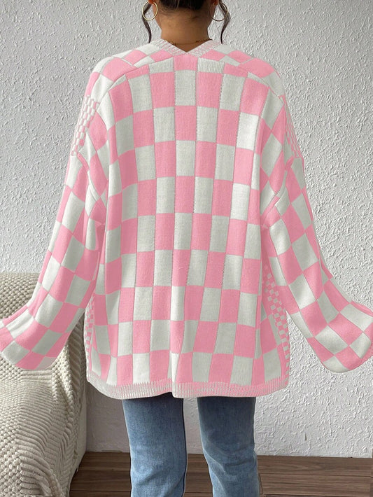Chiquease Women's Checkerboard Patchwork Cardigan - Cozy Long Sleeve Top for Fall and Winter Fashion