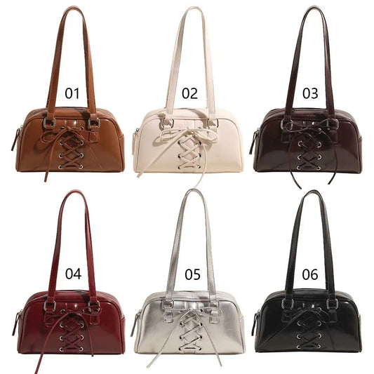 Shoulder Bag for Women Solid Color Boston Tote Bag PU Leather Bowling Handbag Hobo Bag for Work Travel