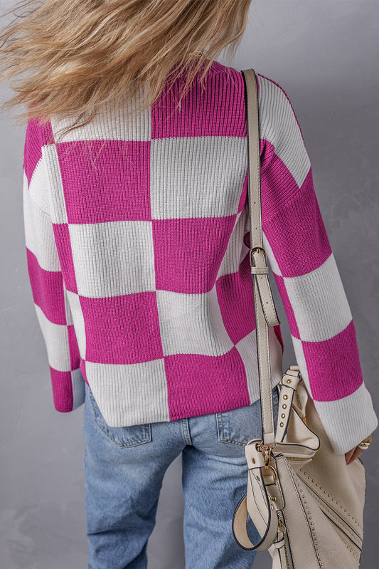Chic Checkered Round Neck Baggy Sweater for Effortless Style