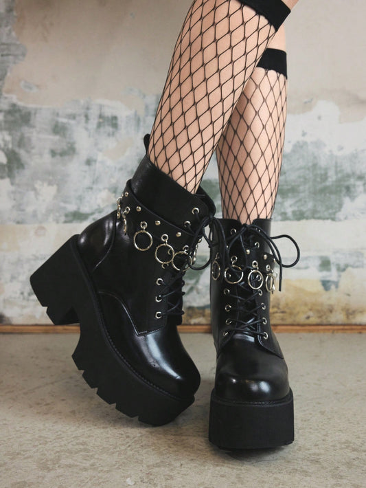 Elevate Your Style with Sugarpunk Gothic Lace-Up Chunky Ankle Boots for Every Season