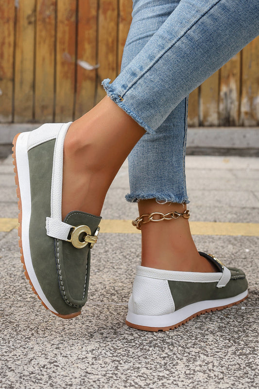 Chic Metal Ring Decor Thick Sole Slip-On Loafers for Effortless Style