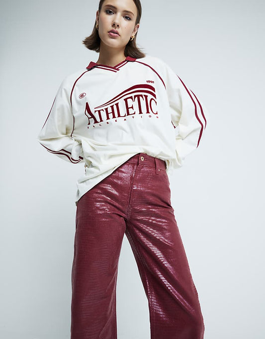 Burgundy Snake Print Relaxed Straight Leg Jeans by River Island for Effortless Style