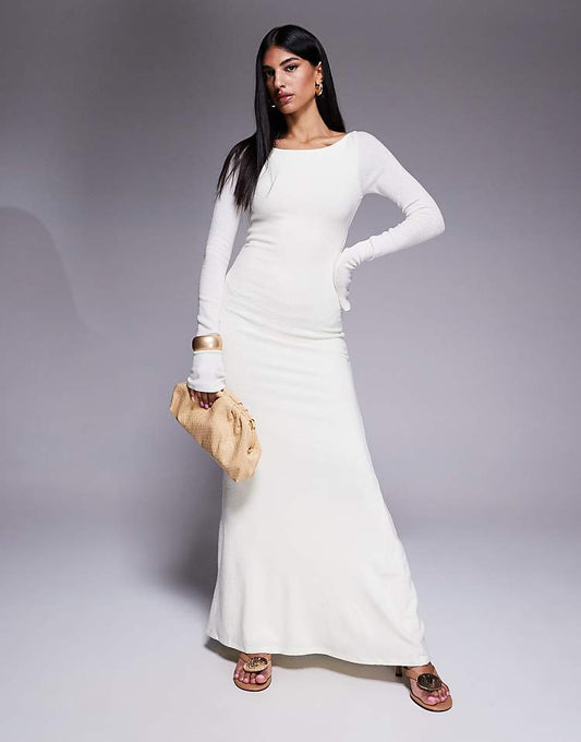 Elegant Off-White Open-Back Maxi Dress by Princess Polly - Snyder Fine Knit Design