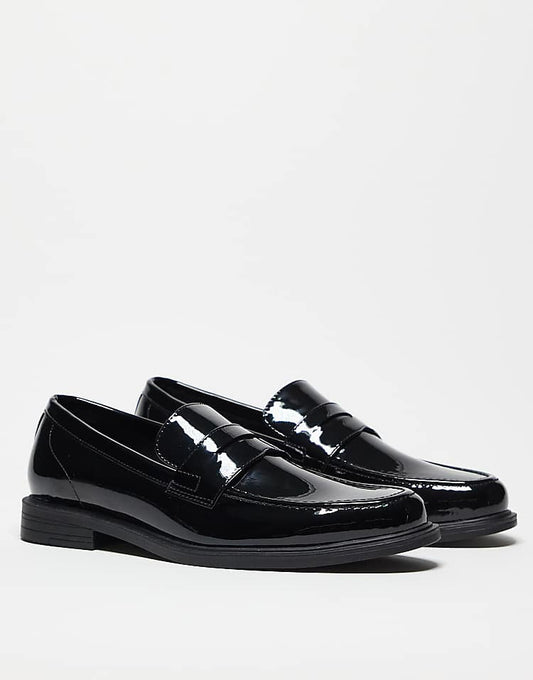 Stylish Black Patent Penny Loafers for Effortless Elegance