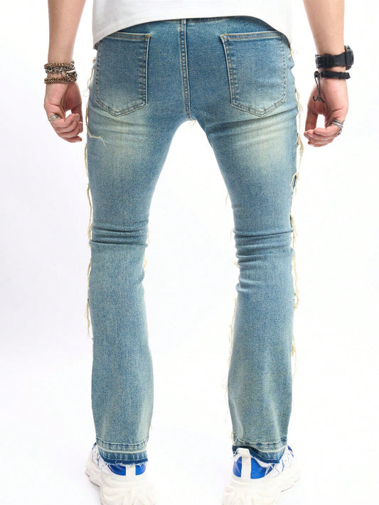 Men's Ripped Frayed Raw Trim Jeans for Trendy Casual Style