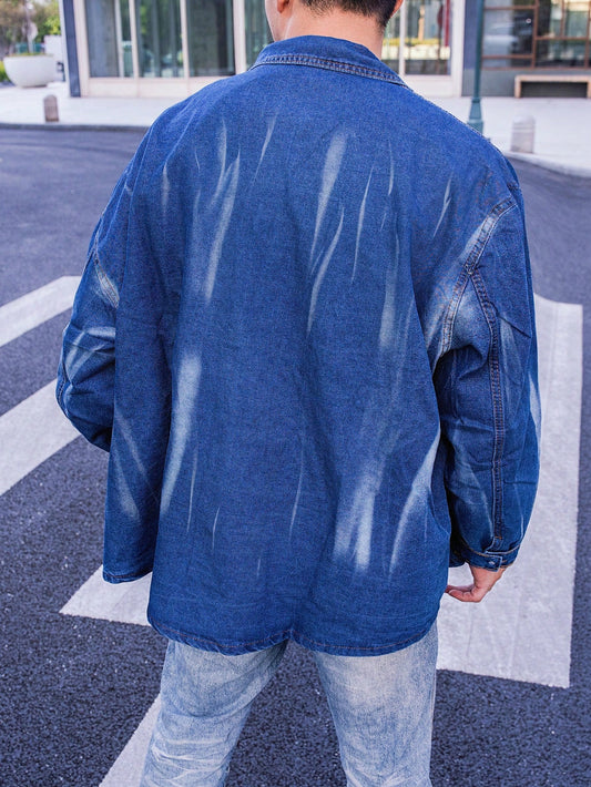 Men's Extra Loose Denim Shirt with Stylish Turn-Down Collar and Drop Shoulder Design