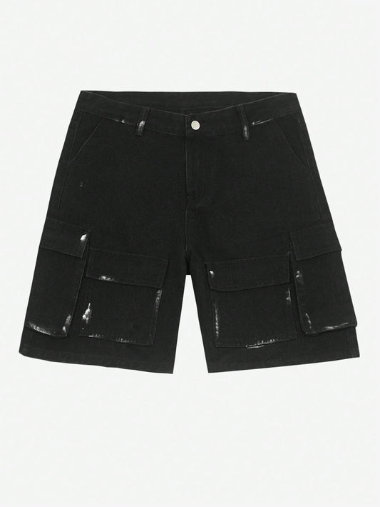 Men's Summer Multi-Pocket Paint-Splattered Denim Shorts for Trendy Casual Wear