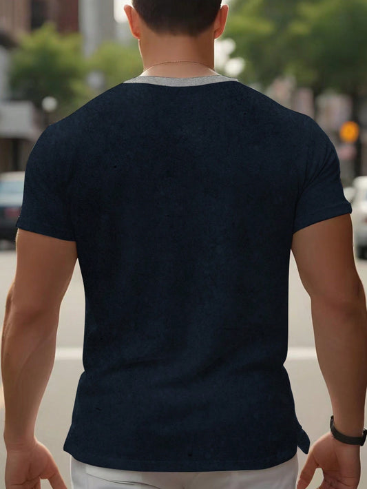 Men Color-Block Edge Letter Printed Short-Sleeved T-Shirt For Spring And Summer