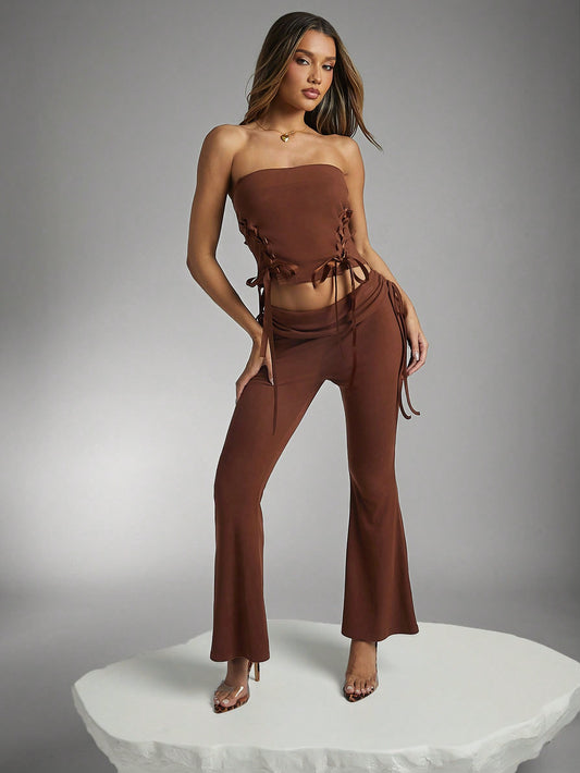 Elegant Sweetra Women's Flared Long Pants with Mesh Splice and Elastic Waist