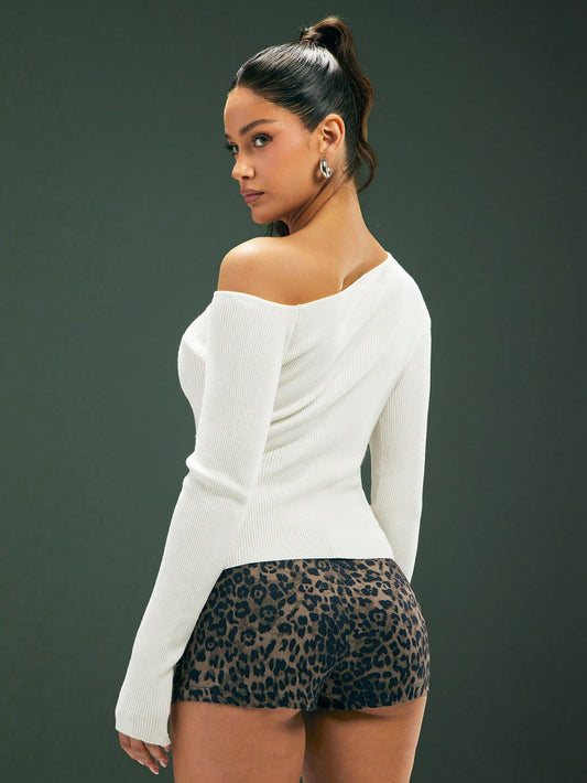 Denimoi Off-Shoulder Buckle Detail Sweater: Chic Minimalist Summer Fashion for Women