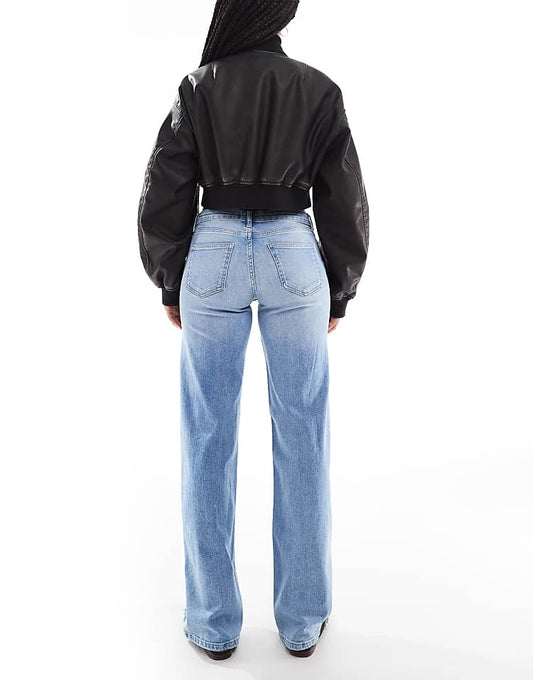 Pul&Bear Washed Blue Mid Rise Straight Jeans for a Stylish Everyday Look