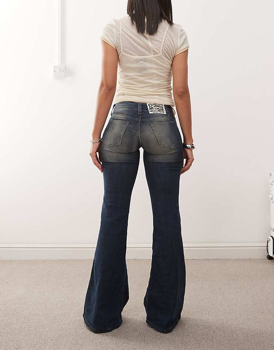 Affordable Chic: Cheap Monday Blue Wash Faded Flare Low Stretch Jeans