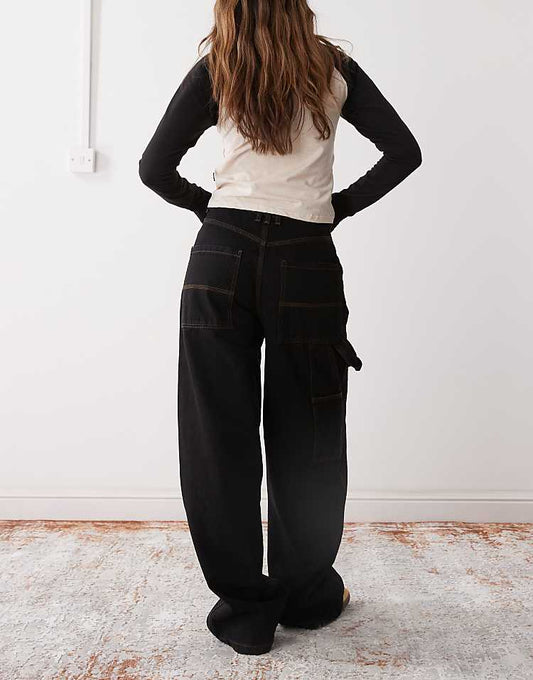 COLLUSION X002 baggy carpenter jeans in black rinse wash