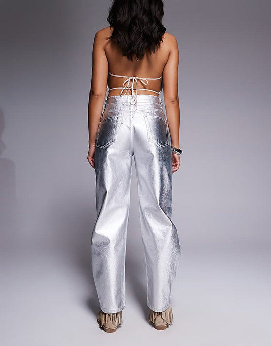 Shiny Style: Everyday Barrel Leg Jeans in Metallic Silver