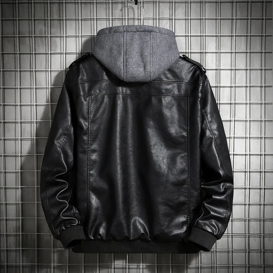 Hooded Leather Jacket Men's PU Leather Motorcycle Leather Coat