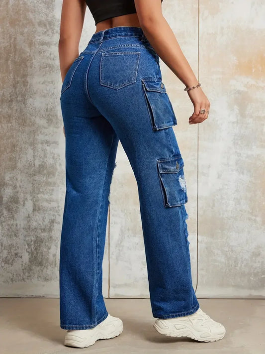 American Retro Punk Style Jeans New Versatile No Waist Pocket Work Style Fashion Denim Wide-leg Pants Female Baggy Jeans Pants
