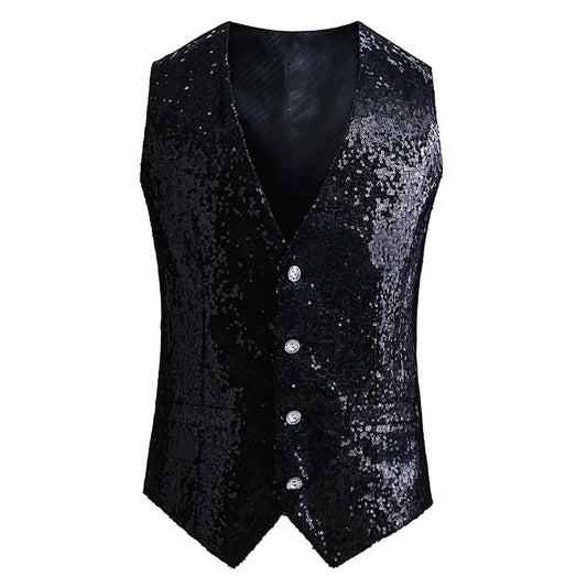 Men's Shiny Sequin Button Waistcoat Suit Vest Evening Wedding Party Glitter Sleeveless Slim Vests