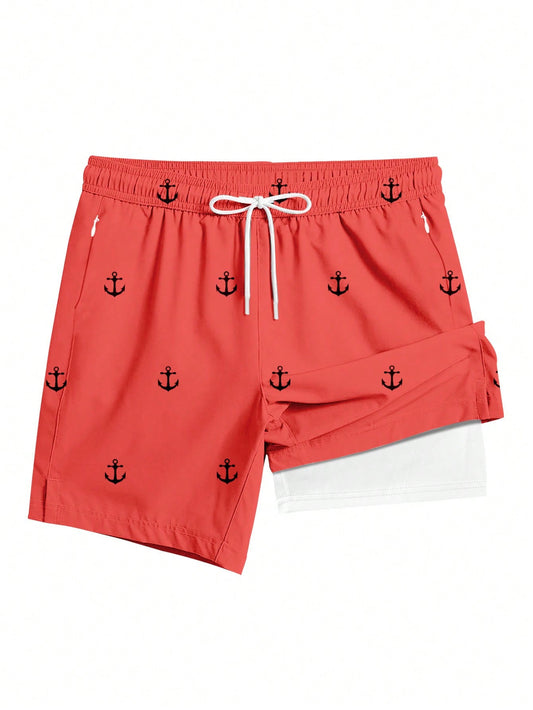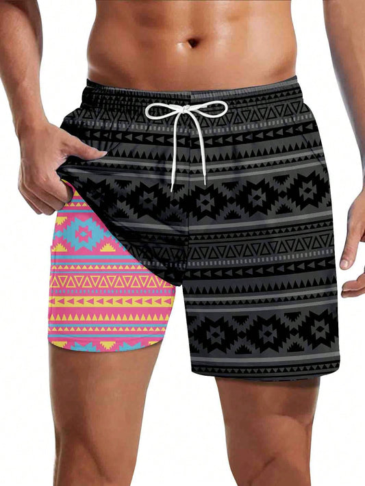Men's Double Layer Beach Swim Trunks - Stylish Sportswear for Vacation Adventures