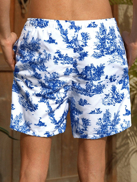 Stylish Men's Tropical Print Board Shorts for Beach and Swim Adventures