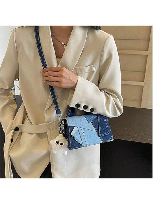 Stylish Denim Patchwork Mini Crossbody Bag for Women - Trendy Shoulder Purse & Clutch Handbag