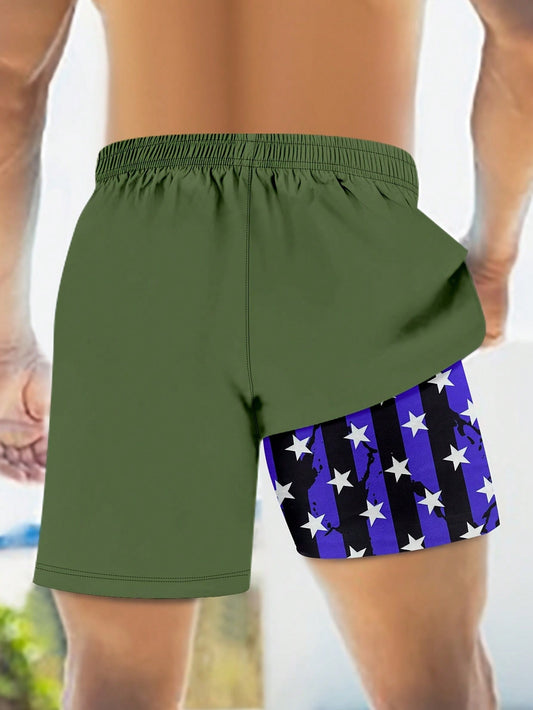 Men's Quick-Drying Swim Trunks with 2-in-1 Compression Liner - Stylish Camouflage Board Shorts for Summer Fun
