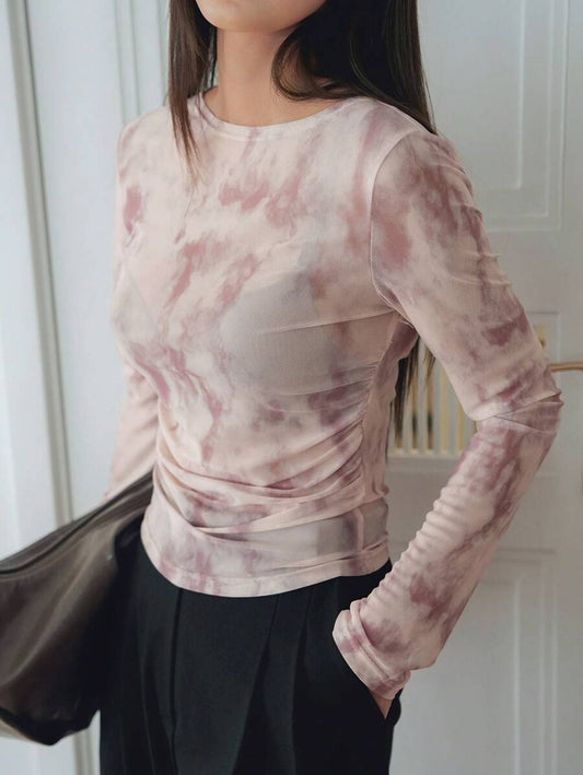 Vintage Print Long Sleeve Basic Shirt for Women - Autumn Casual Streetwear Top