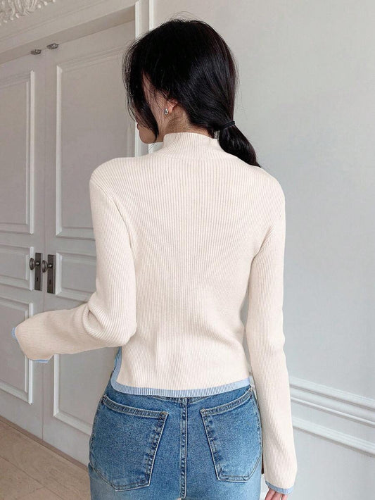 Stylish Stand Collar Fuzzy Embellished Long Sleeve Sweater for Chic Spring and Autumn Wear