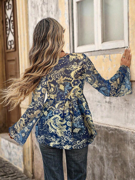 DAZY Women's Floral Lace Sheer Long Sleeve Top - Elegant Fall Fashion Essential
