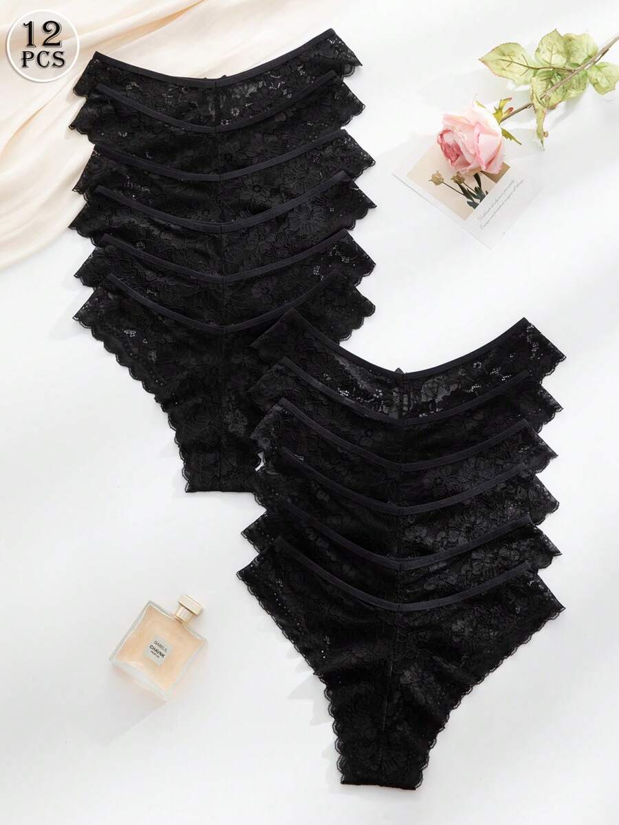 12-Piece Women's Elegant Lace Trim Bikini Underwear Set for Ultimate Comfort and Style