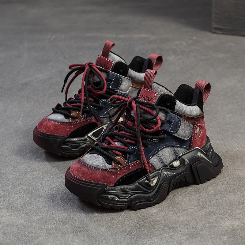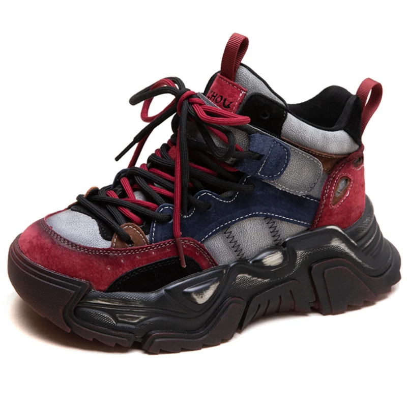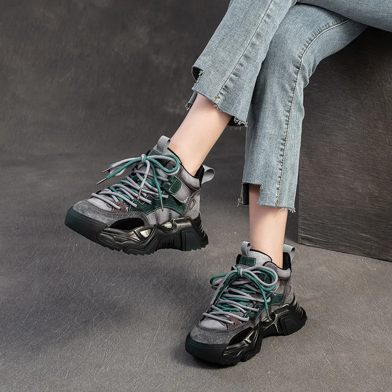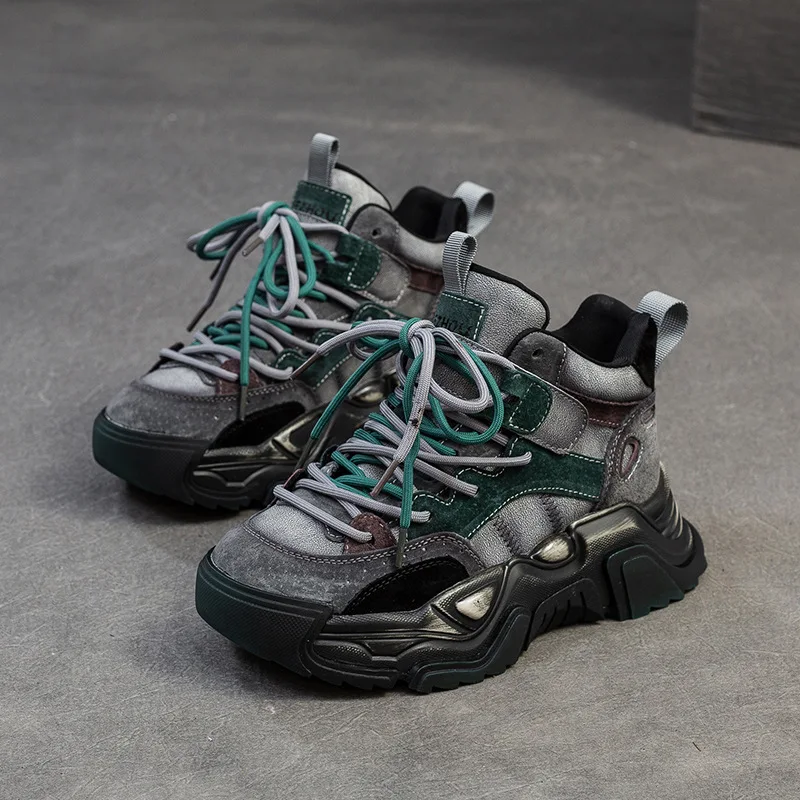 Pigskin Leather Women Platform Wedge Flats Comfy Shoes Rubber Fashion Loafer Flat Chunky Sneakers Vulcanize
