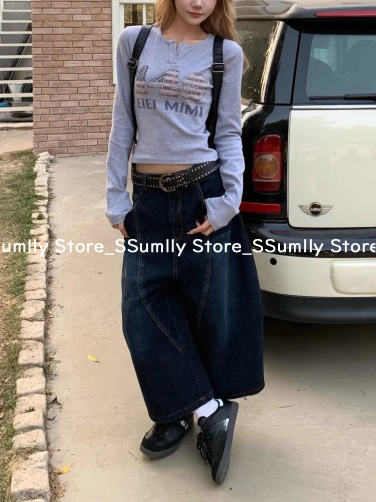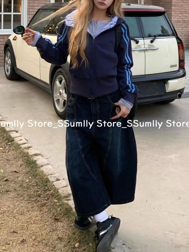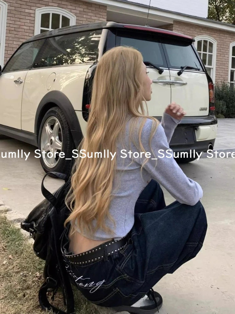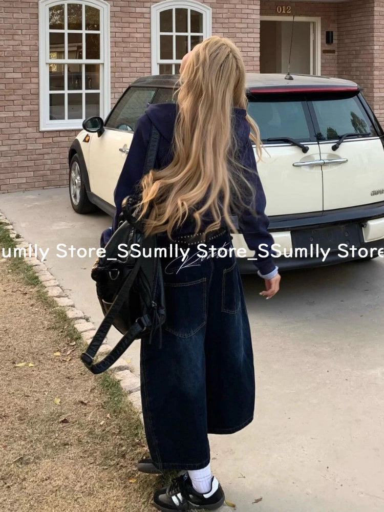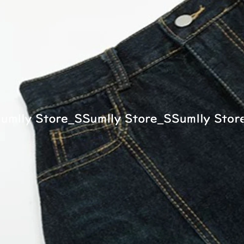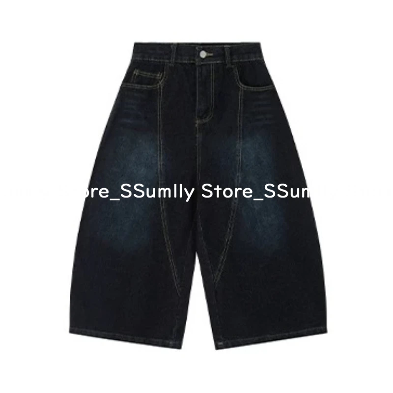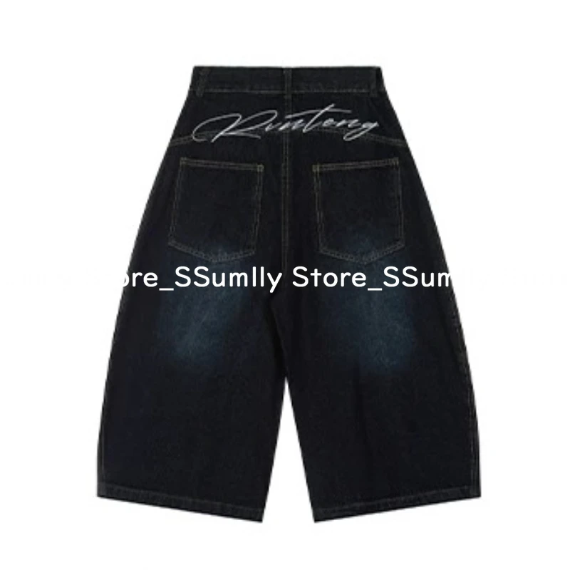 Embroidery Stitched Jeans Women Summer Loose Retro High Waisted Pants Y2k Design Wide Leg Cropped Shorts