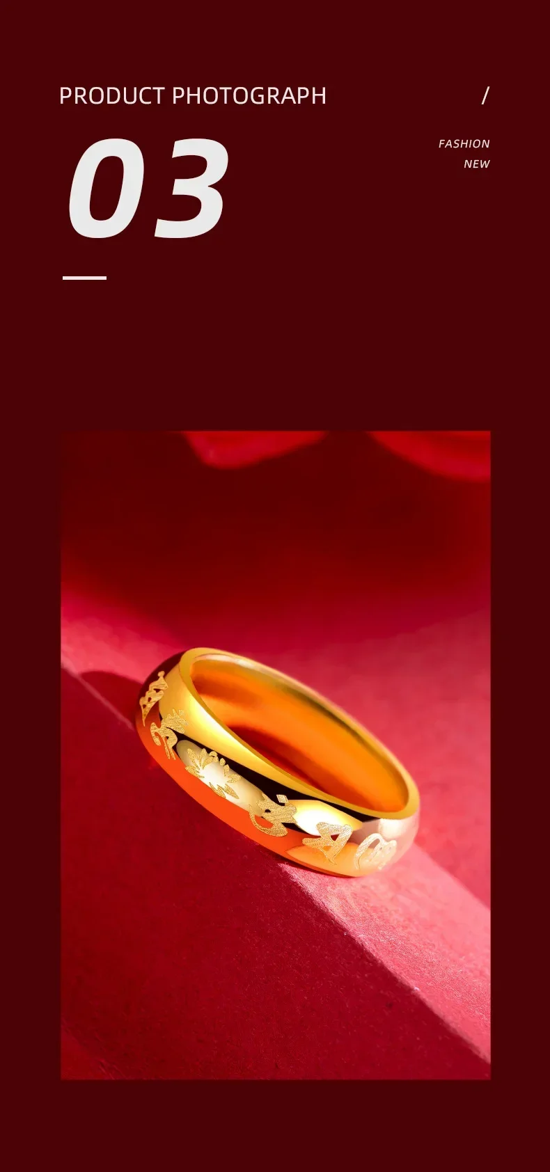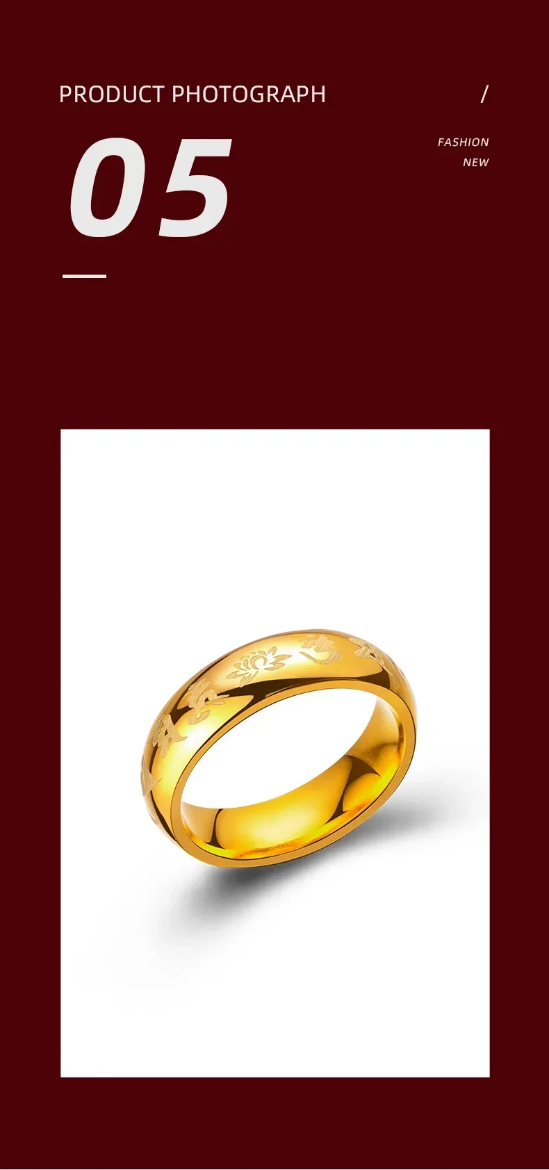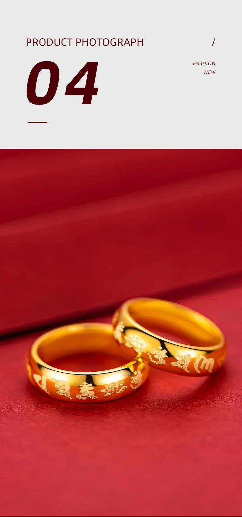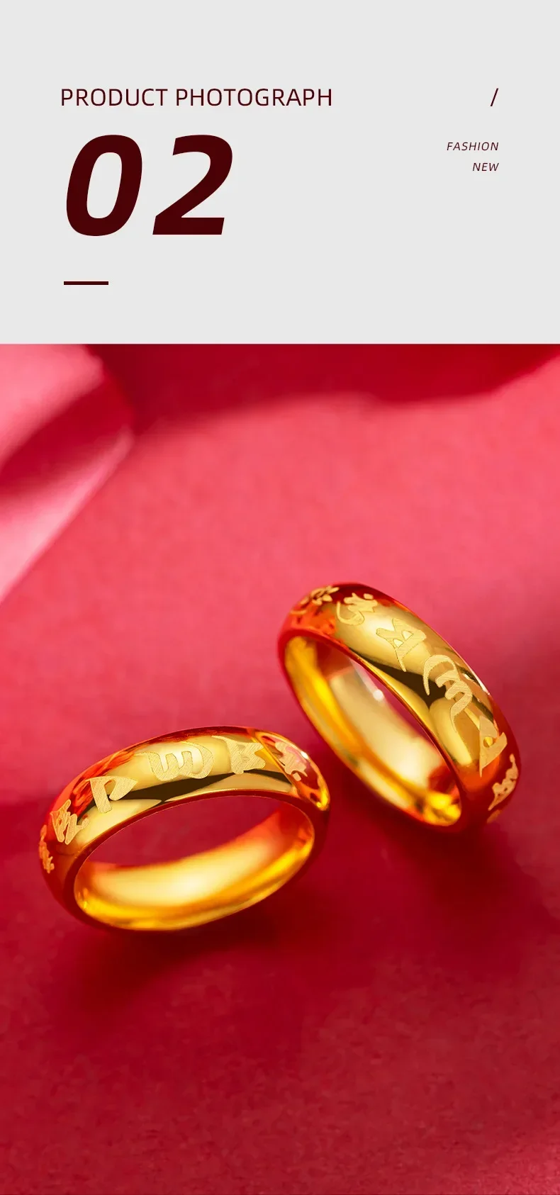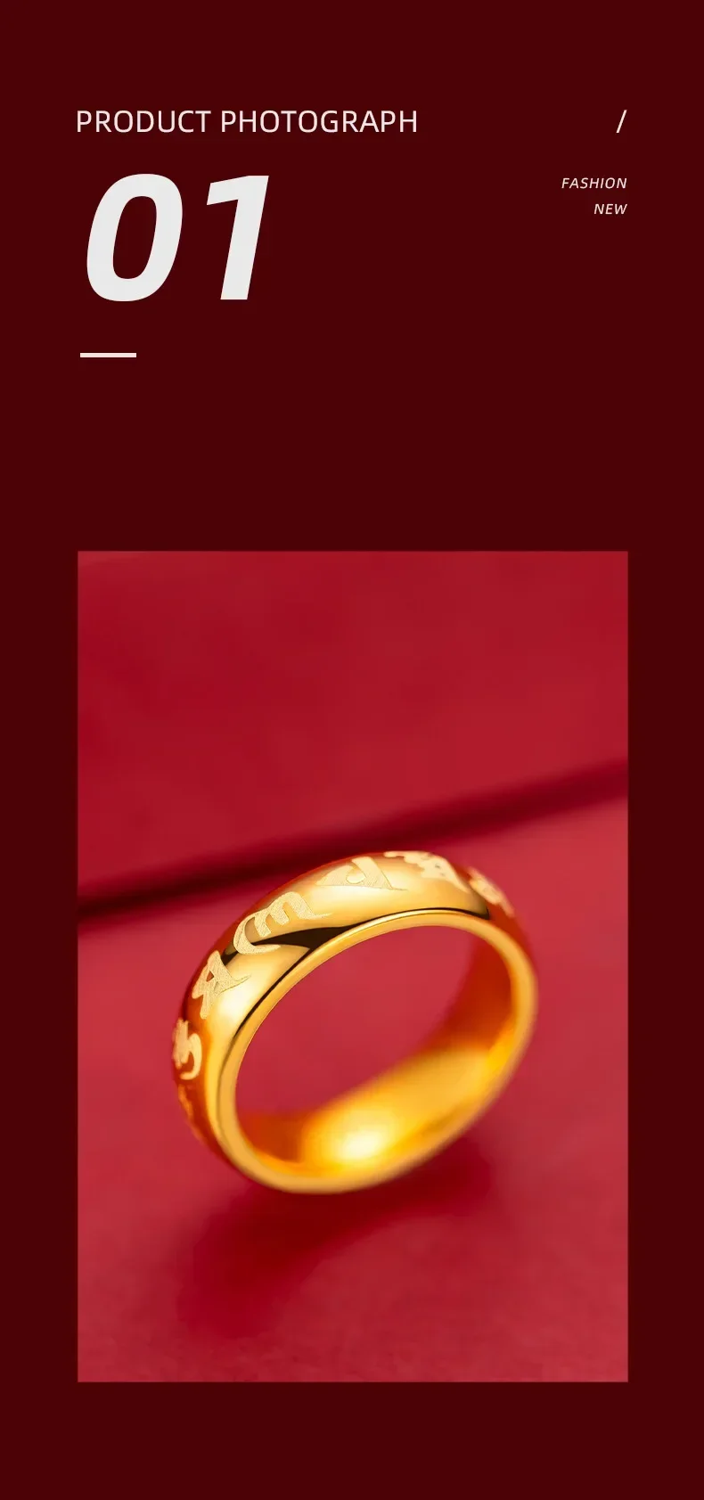 9999 Real Gold 24K Yellow Gold Six-character Mantra Ring Daming Mantra for Men and Women Couples Ring
