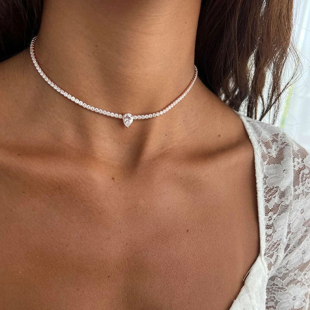 All Moissanite Tennis Necklace with Solitaire Waterdrop Diamond Riviera Necklace for Women 925 Sterling Silver Adjustable Choker
