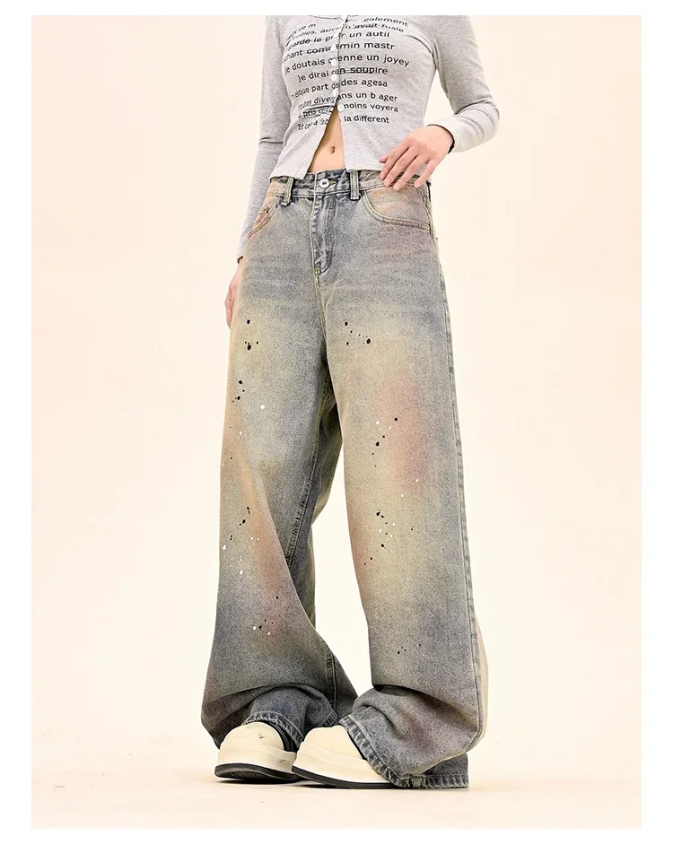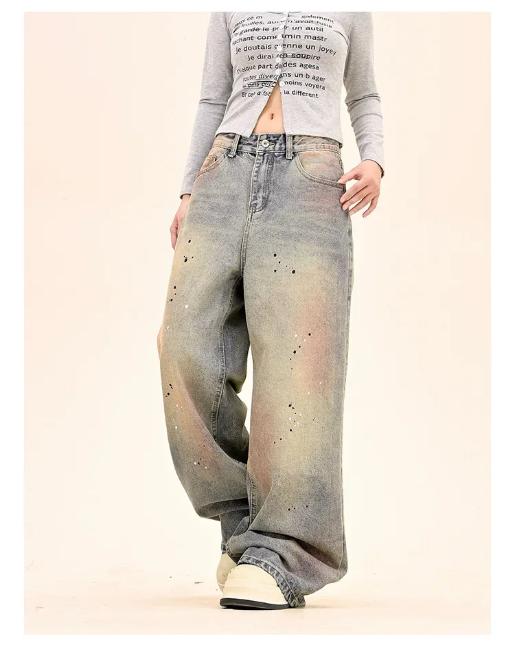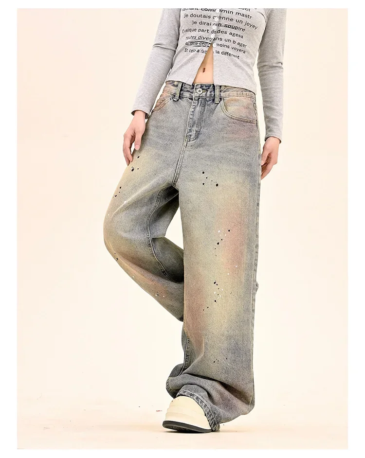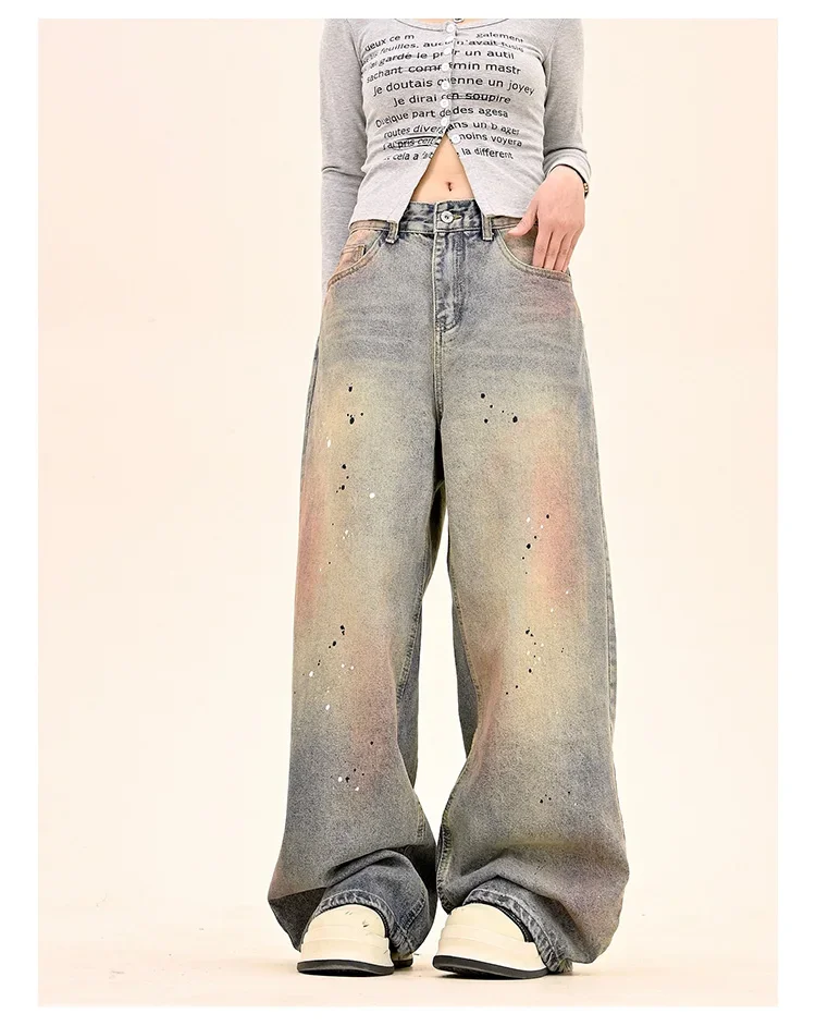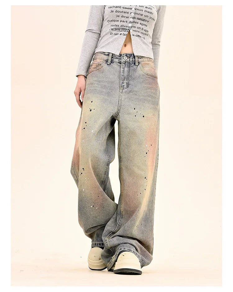 American Fashion Tie-Dye Graffiti Straight Leg Wide Jeans Straight Leg Loose Jeans Hip-hop Street Baggy Jeans