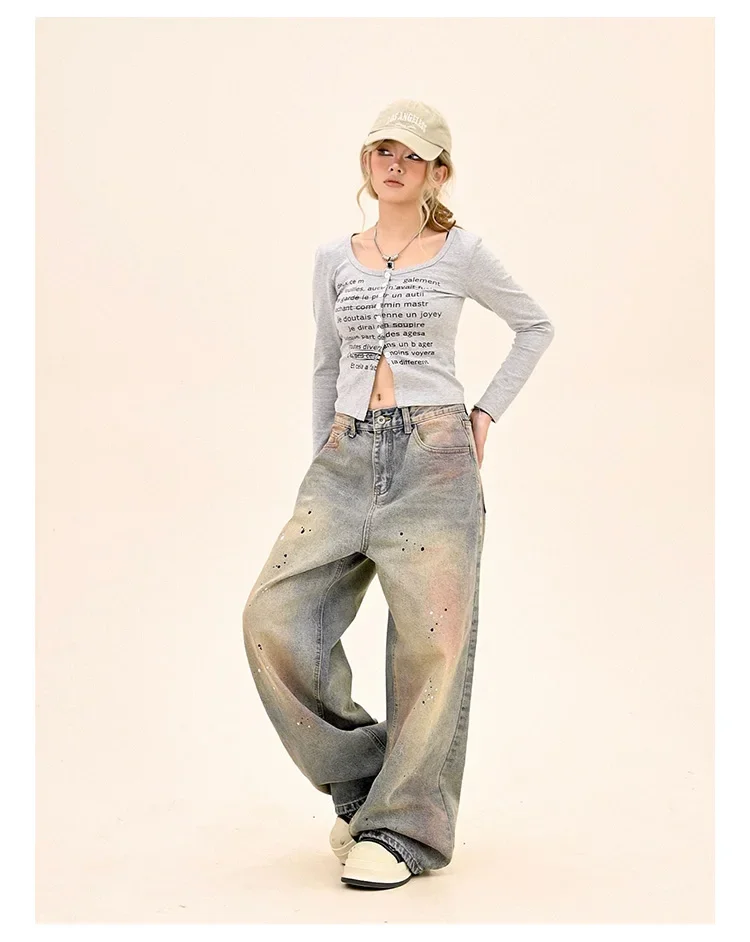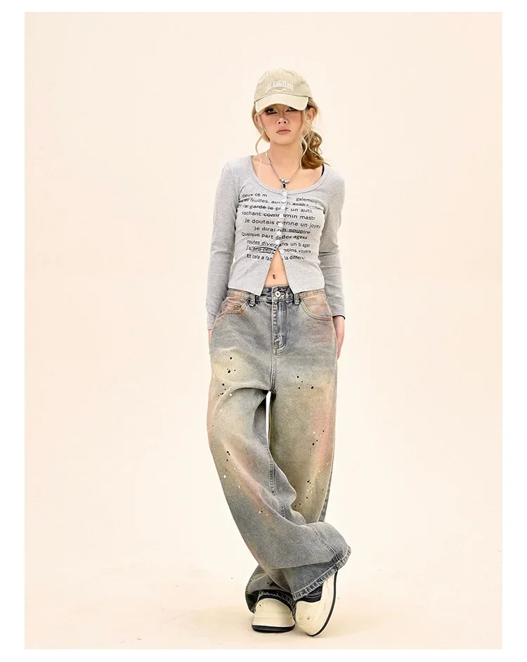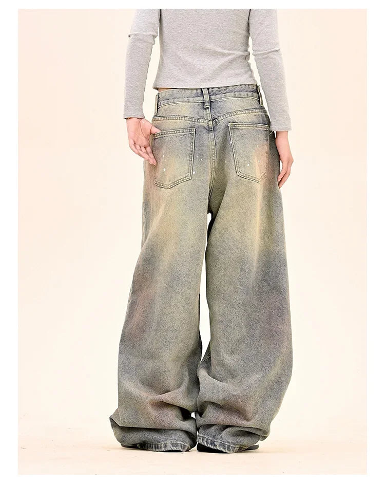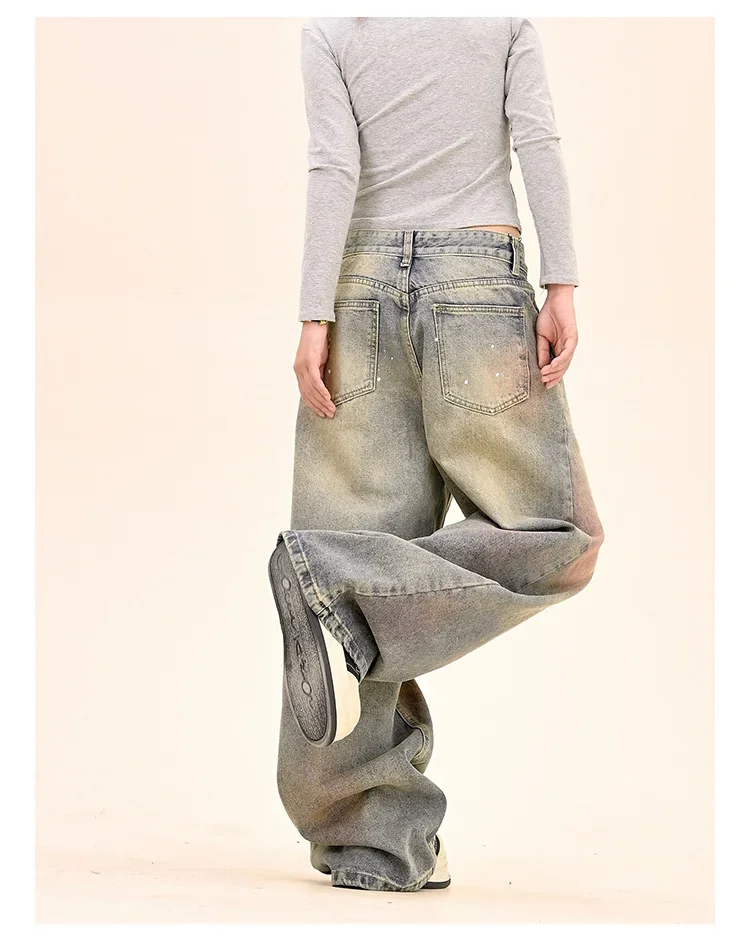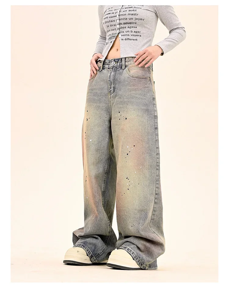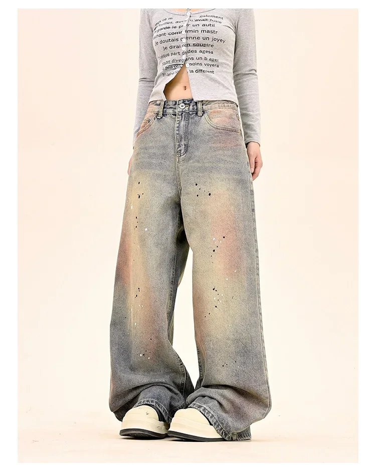 American Fashion Tie-Dye Graffiti Straight Leg Wide Jeans Straight Leg Loose Jeans Hip-hop Street Baggy Jeans