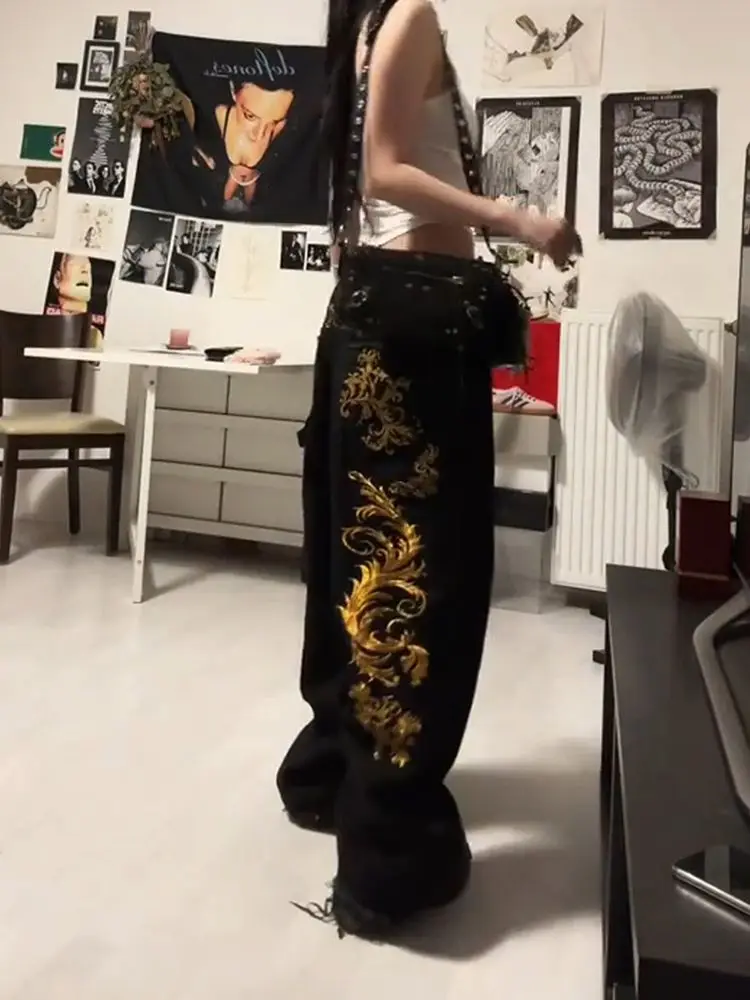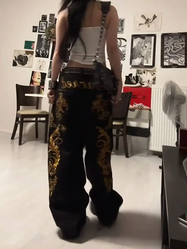 Dragon Print Straight Jeans Harajuku Hip Hop Y2k Pants Baggy Jeans