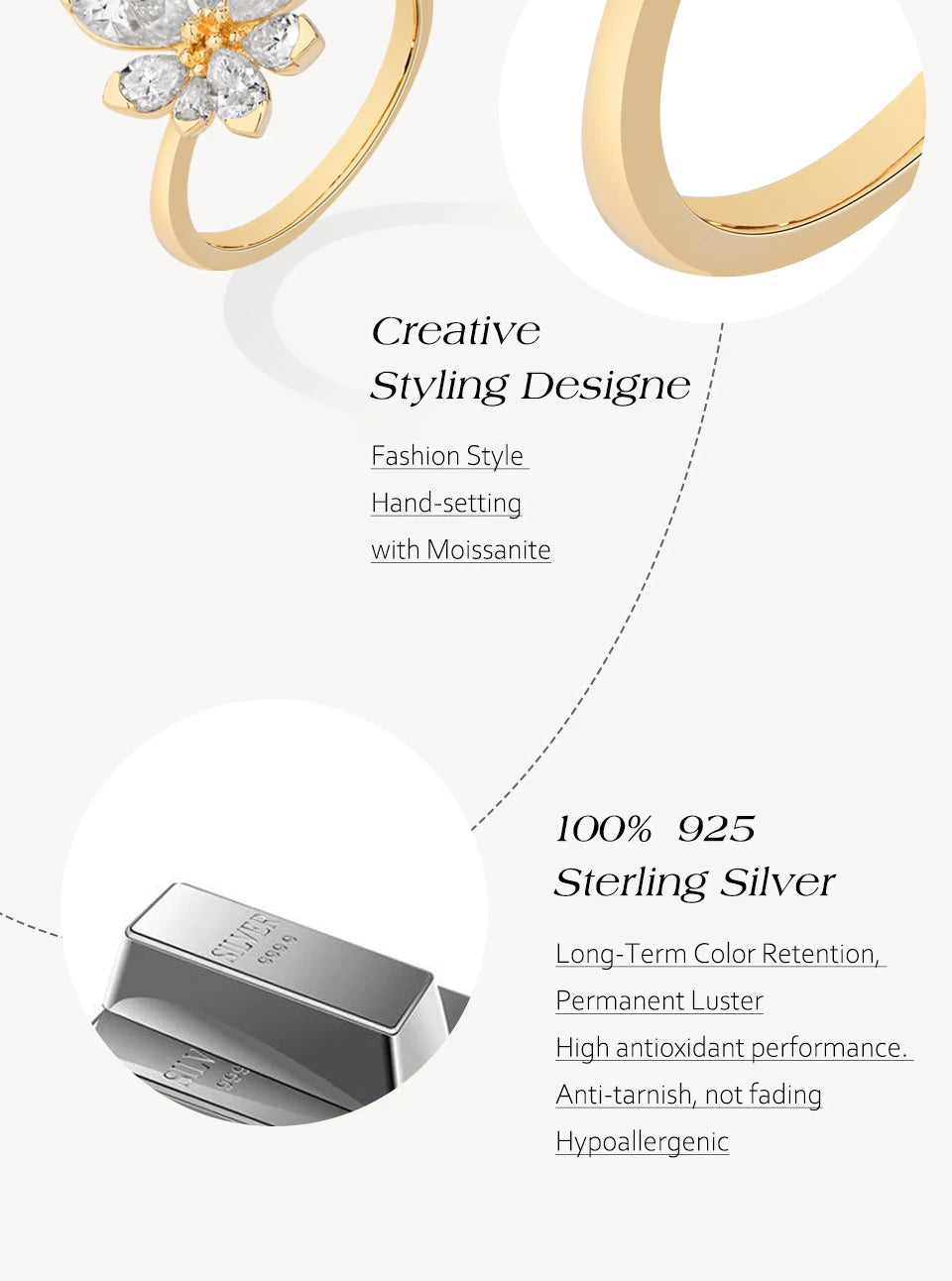 ATTAGEMS 925 Sterling Silver Luxury Women Ring Flowers DVVS1 Moissanite Pear-cut Classical Band Engagement Wedding Fine Jewelry