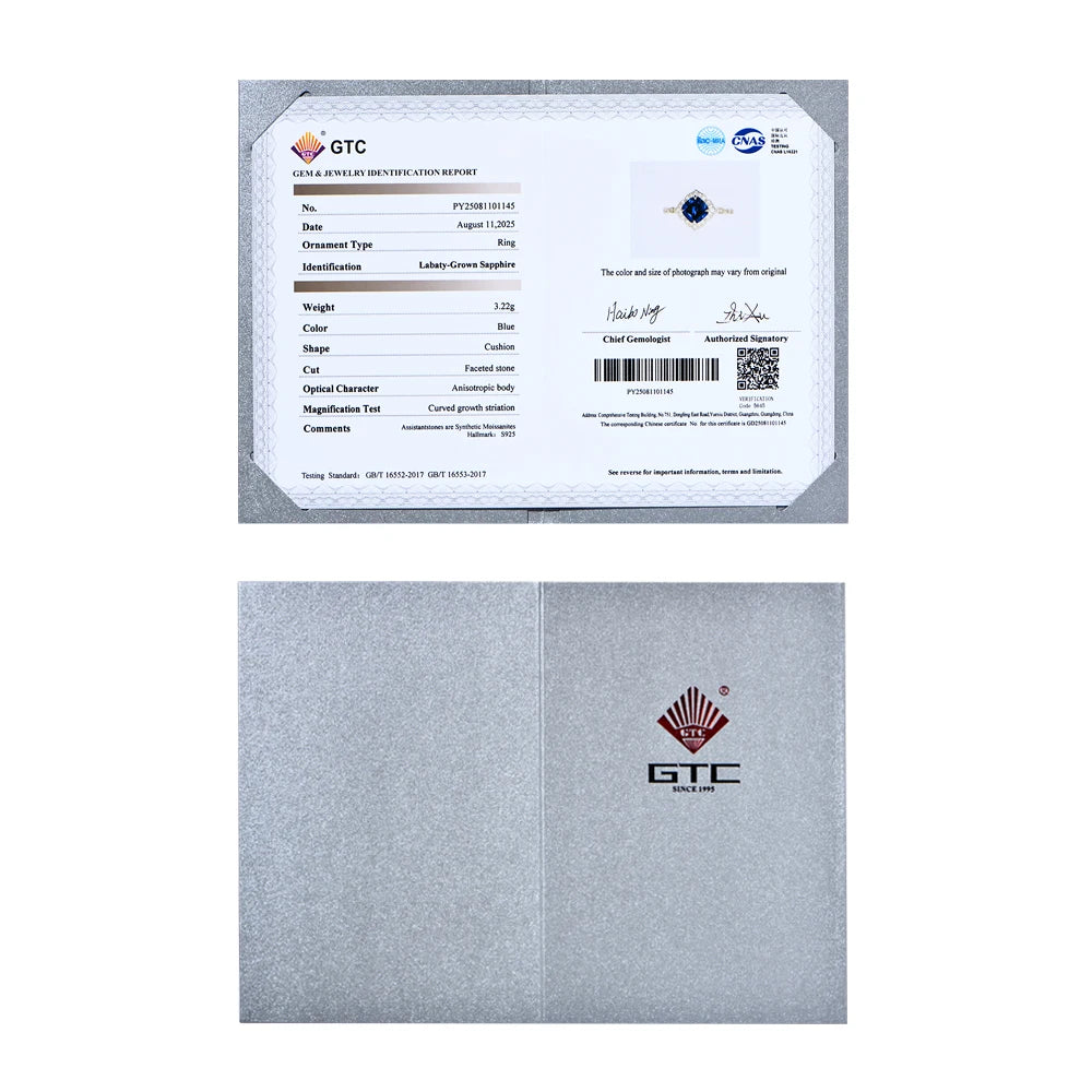 ATTAGEMS Classical Blue Sapphire Ring Cushion Cut 2.0ct DVVS1 Real 925 Sterling Silver For Women Engagement Wedding Fine Jewelry