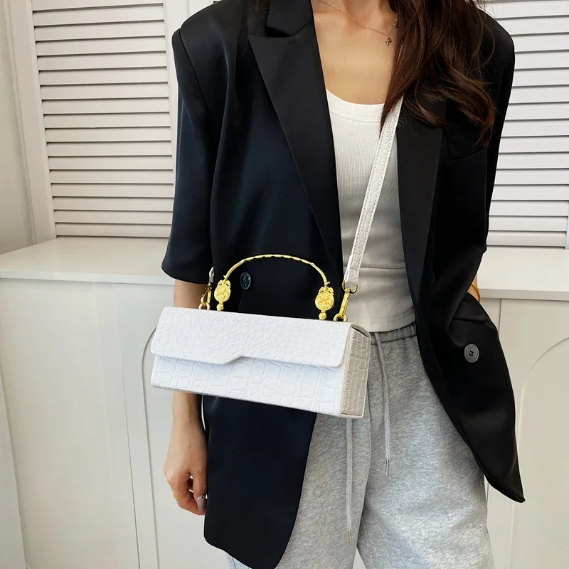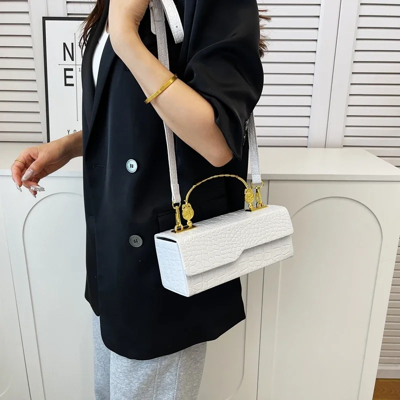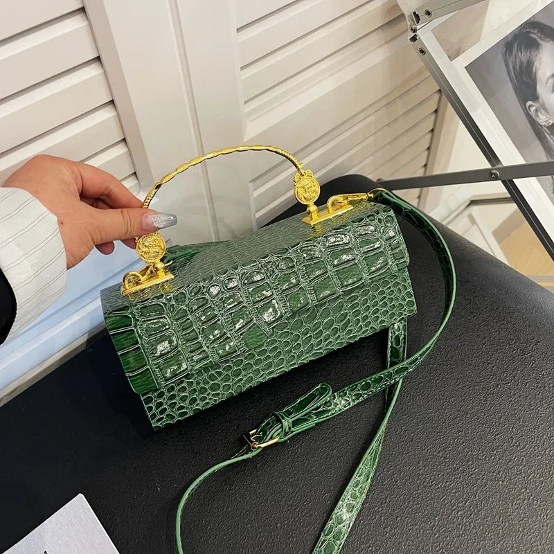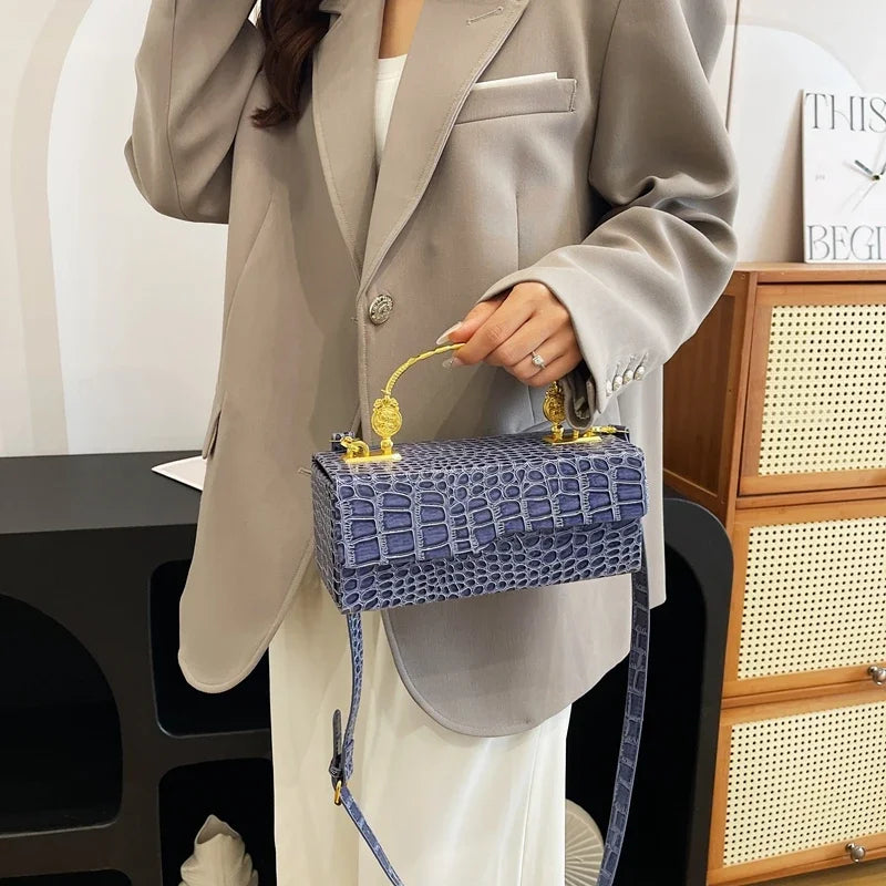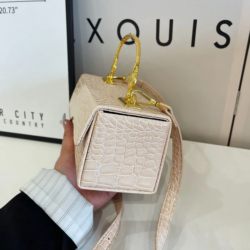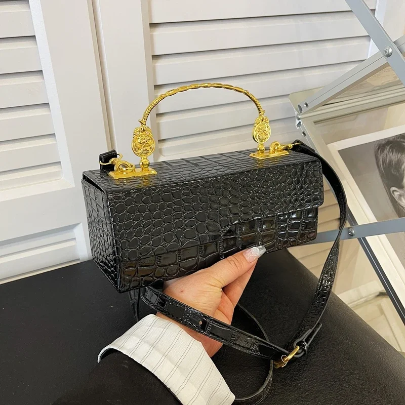 Black Crocodile Pattern Crossbody Bag Fashion Box Lipstick Pouch Designer Pu Leather