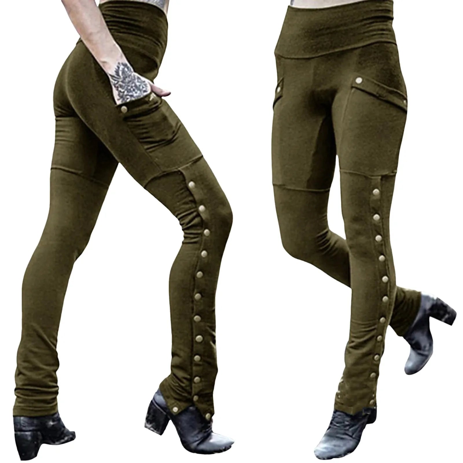 Black Pencil Pants For Women Medieval Gothic Steampunk Rivet Skinny Leggings Trousers Sexy Fashion High Waisted Denim Pants