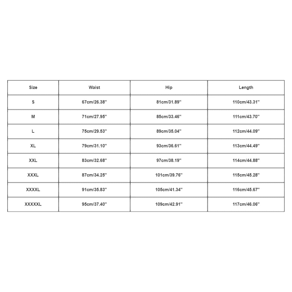 | Size:S | Waist:67cm/26.38'' | Hip:81cm/31.89'' | Length:110cm/43.31'' |