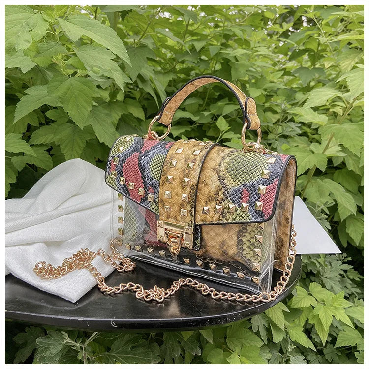 Expertly crafted for the fashionable woman, this crossbody bag features studded graffiti designs and a luxury designer touch. Made with high quality materials, it exudes elegance and style. Perfect for any occasion, this bag offers both functionality and a statement piece for any fashion-forward female.