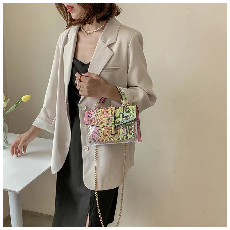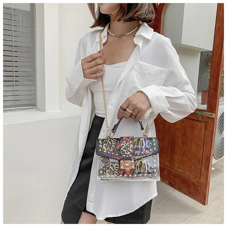 Women Studded Graffiti Crossbody Bags Fashion Shoulder Bag For Ladies High Quality