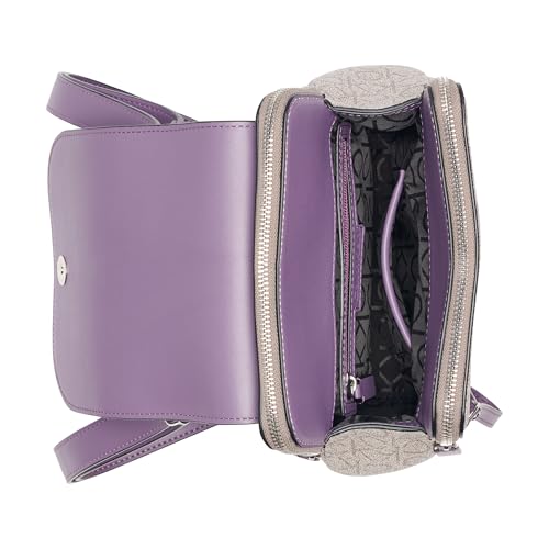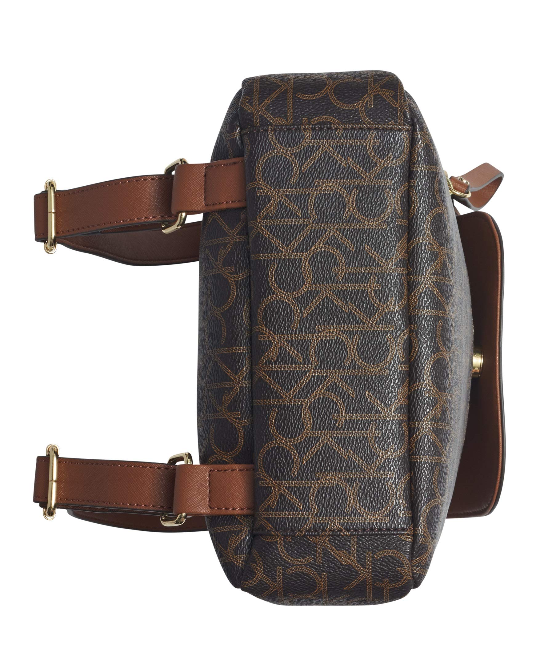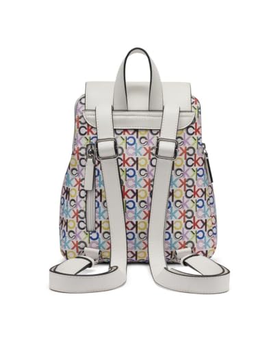 Calvin Klein Women's Elaine Signature Key Item Flap Backpack, Brown/Khaki/Luggage Saffiano, One Size