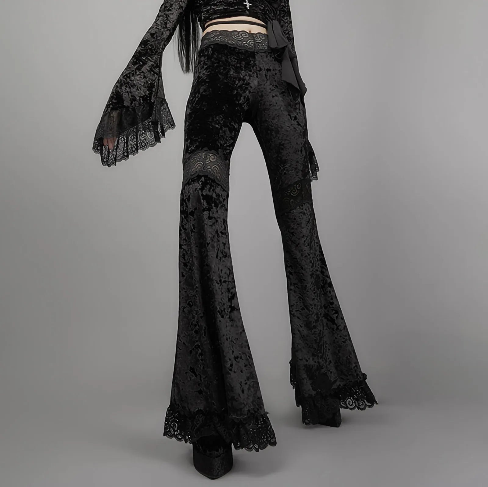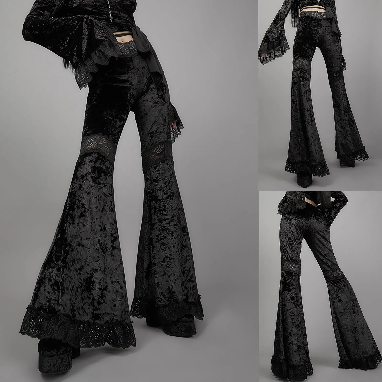 Women Fashion Pants Gothic Paneled Lace Wide-leg Pants Long Pants